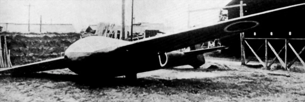 The Wakazakura is otherwise briefly described by a few Japanese secondary sources. It was a modification of the Navy glider ‘Chikara’ (Power). The Chikara was designed and first built by Japan Small Airplanes in 1941 as a two-seat trainer for the experimental ‘MXY5’ transport glider developed by the Kūgishō. Two pilots are seated in tandem for the purpose of training to be towed, gliding, and landing. The Chikara was rather large for a glider, with a wingspan of 11.25 meters, and a length of 8.8 meters. The empty weight of the airframe was 326 kilograms, while loaded it weighed 516 kilograms. The structure was made of wood but designed to a high strength for unlimited aerobatic potential. The main wheels for landing were semi-recessed into the fuselage, while a skid was positioned below the nose.